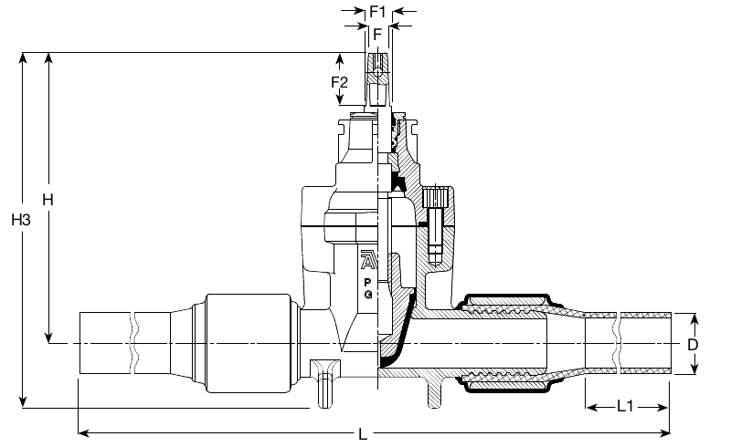 Szervízcsatlakozó szelep PE100/PE100-RC PN10 SDR11 csővégekkel. Max gáz hőmérséklet 20°C: A maximális üzemi hőmérsékletet a PE csövekre vonatkozó ISO9080 élettartamra kitérő követelményeknek megfelelően állítják be,ezért a szerelvény tekintetében emiatt ez a maximálisan megengedett hőmérséklet.