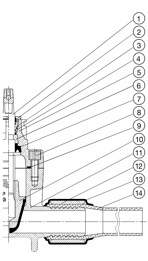 | 36-063-90-713037 | 50 | 63 | PN 5 | 213 | 250 | 900 (10) | 300 | 12 | 15 | 35 | 8,0 | PN5 SDR17 csővel szerelve |